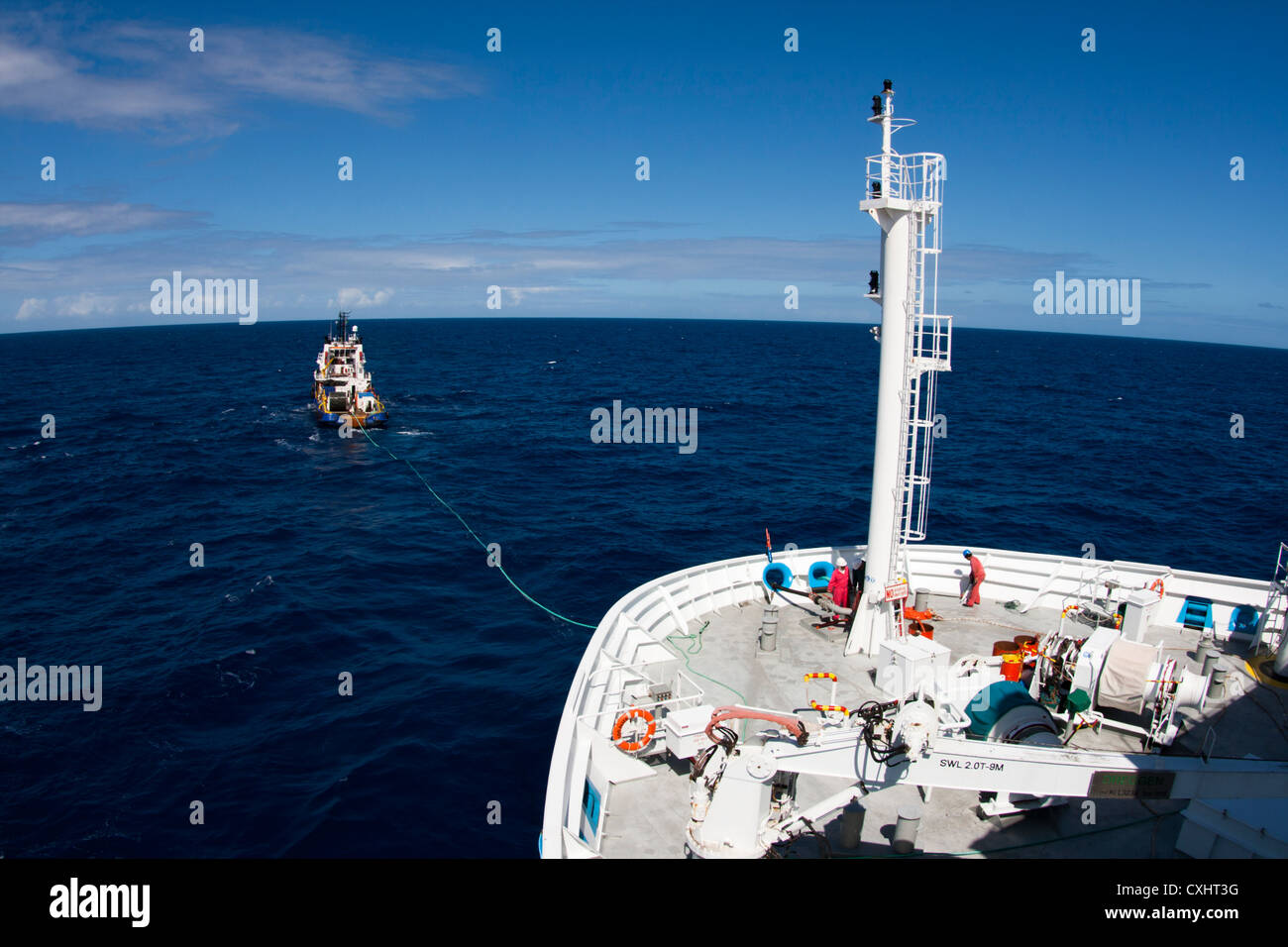 Seismic Vessel Cgg Alize During In Line Bunkering Operation With A Supply Vessel In Offshore Brazilian Waters Alagoas 2007 Stock Photo Alamy