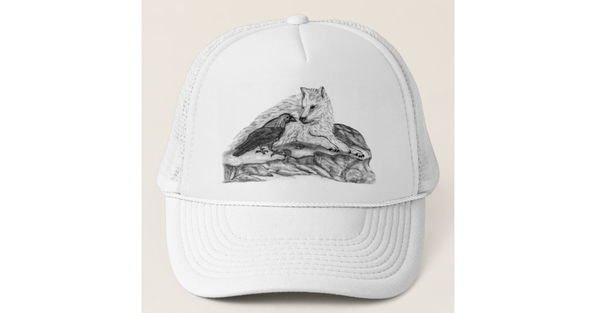 Wolf And Raven Black And White Design Trucker Hat Zazzle